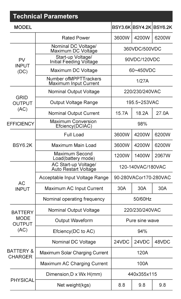 BSY 4.2~6.2k Hybrid Solar Inverter
